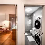 O apartamento tem local de descanso, e confortos como máquina de lavar e controle de temperatura. Para garantir o seu conforto, chuveiro de corrediça e casa de banho separada podem ser encontrados neste alojamento. Secador de cabelo, lençóis de banho e toalhas também podem ser encontrados.